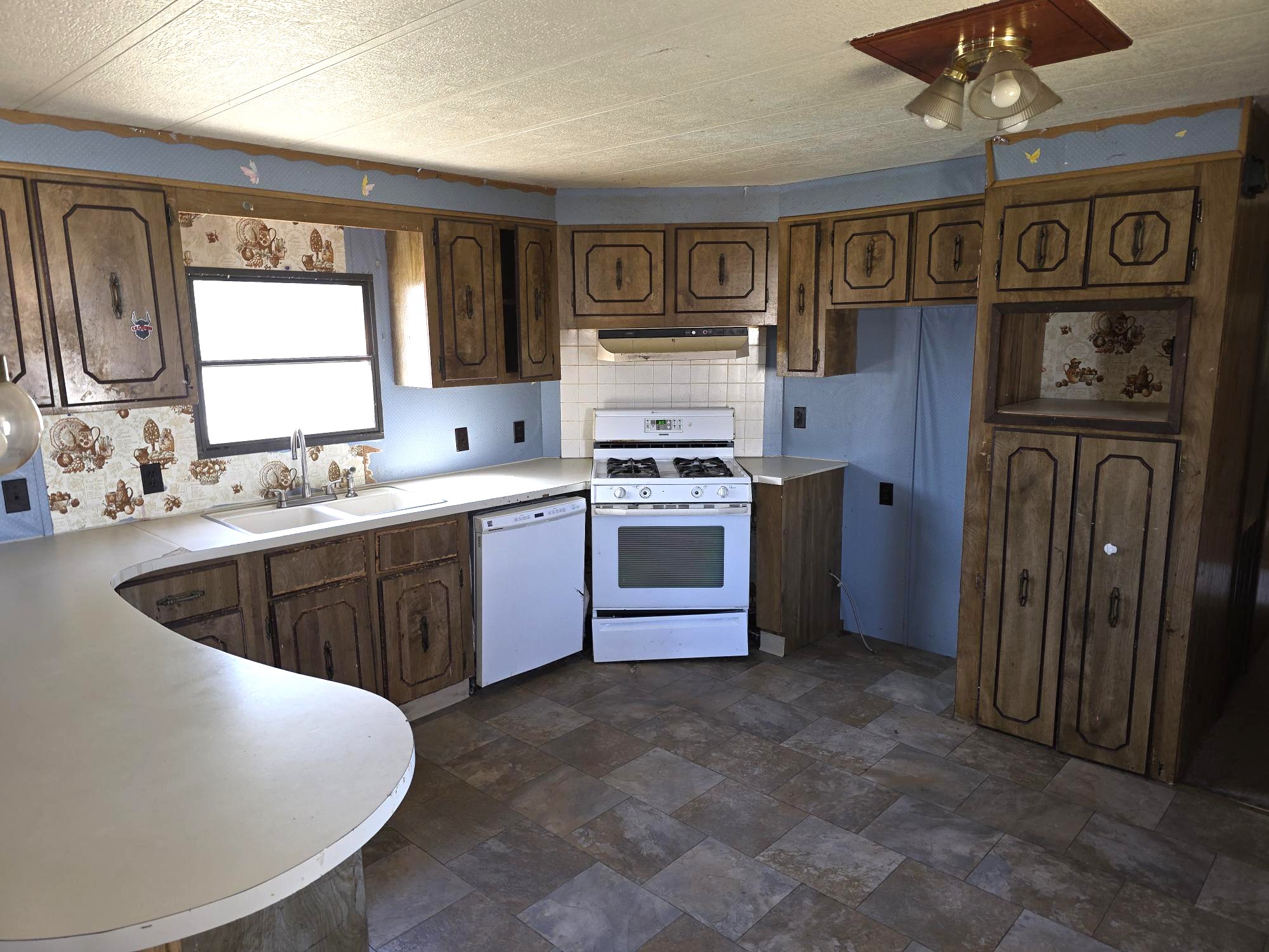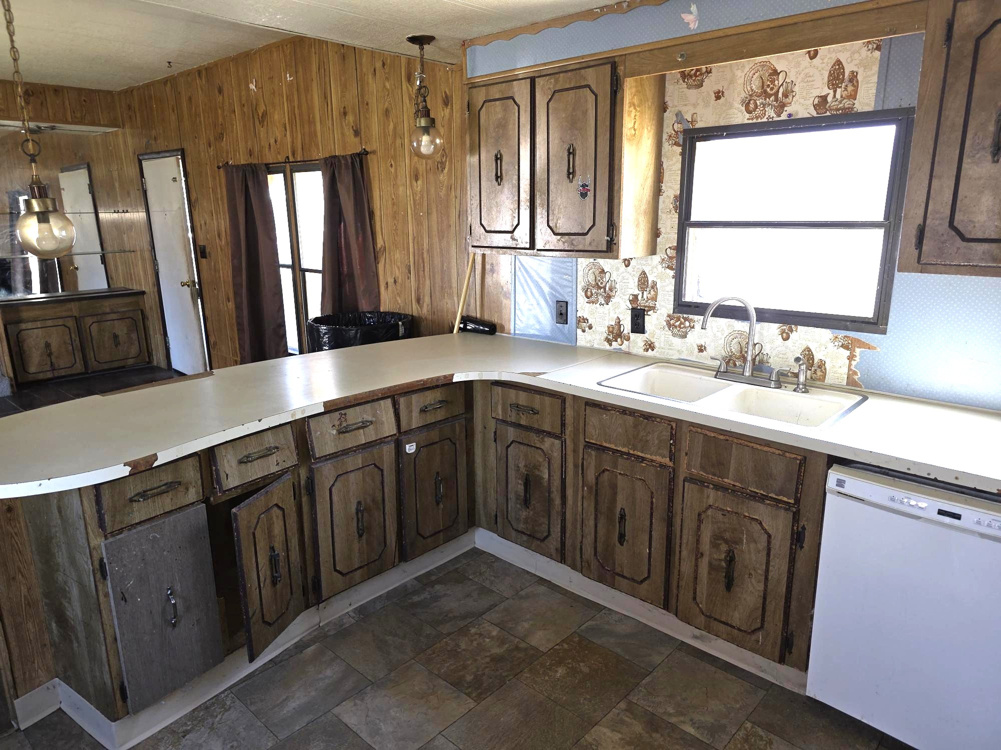 Description: Handyman special! Bring your tools and make it your own. Really unique layout has a middle kitchen and living area, with a raised master bedroom and bathroom. There are extra high ceilings, so the space feels spacious and open. Needs work like flooring, painting, cleaning and maybe some new cabinetry down the road, but it could be an amazing house with some effort.Show all descriptionThis home also has a nice sized covered front deck and shed. Great westend location!
