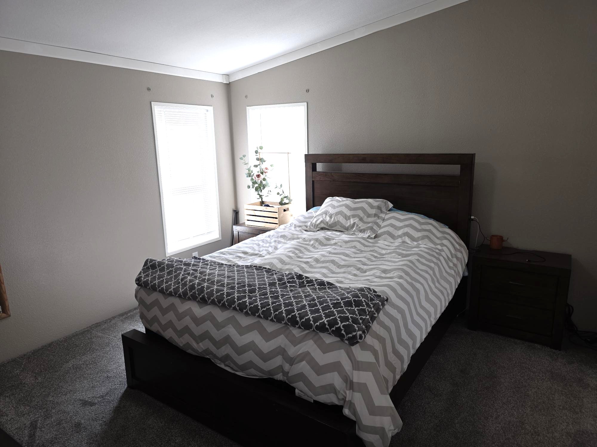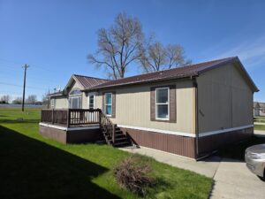 Description: Come and take a look at your new doublewide located in Shiloh Village Estates! Spacious home features a bright and sunny, fully loaded kitchen with an island. There are two large living spaces, a formal one in the front with a beautiful front dormer window, and another large area in the back of the home. The master bedroom suite has it all, with a walk in closet and a large bathroom with double sinks, soaker tub and seperate shower. Set off of the back living area are two nice sized bedrooms split by a full bathroom in between. There are high, vaulted ceilings throughout and the entire home is taped and textured!Show all descriptionOutside you will find everything you want with a large deck, wood siding, metal roof, metal skirting, a huge shed, central air and much more!